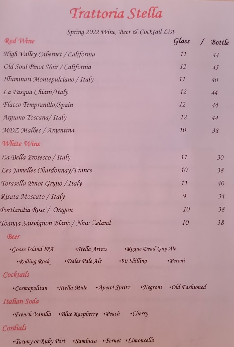 For pasta lovers, Stella's Classics offer tantalizing dishes like the indulgent Tomato Vodka Cream Fettuccine and the rich Spaghetti Bolognese, each prepared with care and quality ingredients. Customers rave about the Short Rib Gnocchi and Pan-Seared Scottish Salmon from the chef's dinner menu, showcasing an expert blend of flavors and textures.